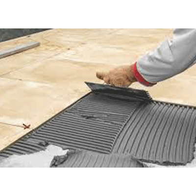 – سپس مطابق با ضخامت مورد نیاز (با توجه اندازه کاشی) ، ماله شانه ای (دندانه دار) مناسب انتخاب و سطح شانه کشی شود.