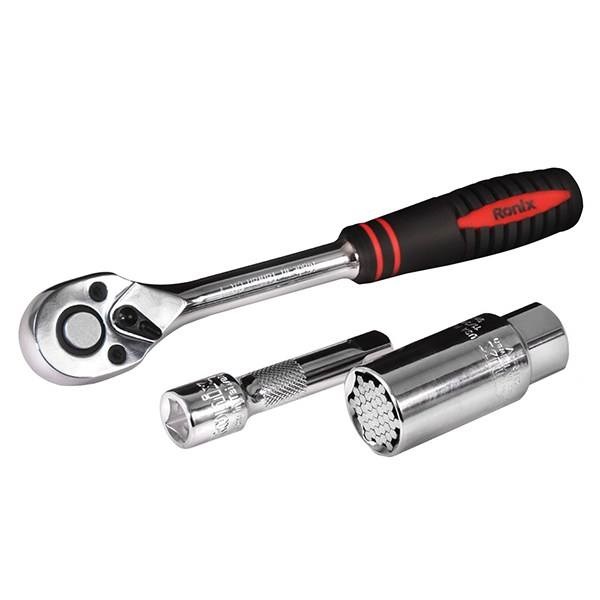 آچارها در اشکال مختلفی تولید میشوند و کاربردهای فراوانی دارند. یکی از کاربردیترین انواع آچارها، آچارهای بکس چندکاره هستند. این آچارها قابلیت زیادی دارند و با کمک آنها میتوانید مجموعهی زیادی از پیچ و مهرهها را باز و بسته کنید. این محصولات معمولا دارای دستهای جدا و سریهایی مختلف هستند و شرکتهای زیادی به تولید آنها مشغول میباشند. شرکت «رونیکس» (Ronix) یکی از شرکتهایی است که انواع مختلفی از آچار را عرضه میکند. محصولات این شرکت نسبت به کیفیتشان قیمت مناسبی دارند. آچار همهکاره مدل «RH-2600» یکی از محصولات این شرکت است. این آچار بر اساس سیستم متریک طراحی شده است و بدنهی باکیفیتی دارد. بدنهی این محصول از آلیاژ کروم-وانادیوم ساخته شده است و دارای روکشی از جنس کروم است. دستهی این آچار به شکل جغجغهای طراحی شده و دارای سایز 3.8 اینچی است. این محصول رابطی با سایز 3.8 اینچی دارد و به کمک آن میتوانید با سهولت بیشتری کار کنید. سریهای این محصول اشکال مختلفی دارند و برای باز و بسته کردن پیچ و مهرههای چهارگوش، ششگوش، آلنی و قلابشکل در سایزهای 9 تا 21 میلیمتر مناسب هستند.